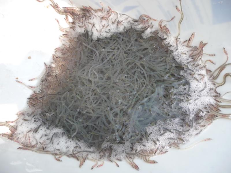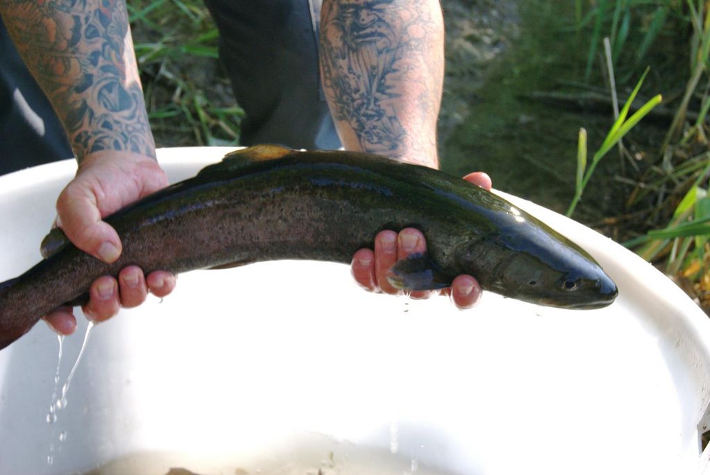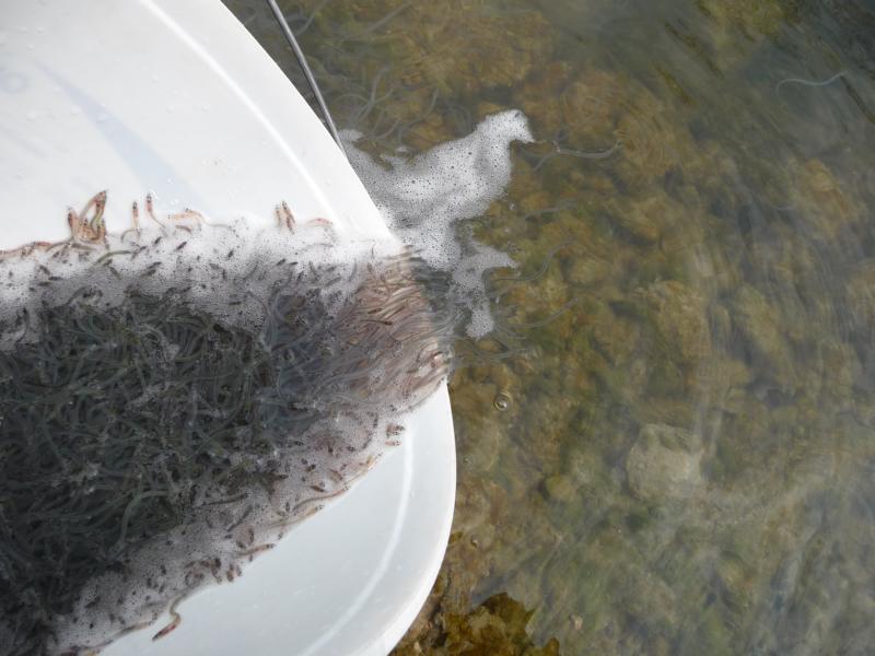 Glasaalbesatz am Isarkanal
